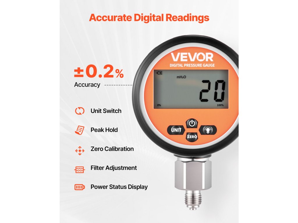A hagyományos analóg tárcsákkal ellentétben ez a hidraulikus nyomásmérő készlet könnyen leolvasható digitális eredményeket biztosít nagy pontossággal, csökkentve az emberi hibák számát. Freescale-chippel és diffúz szilíciumérzékelővel készült, ami megbízható és konzisztens leolvasást biztosít.