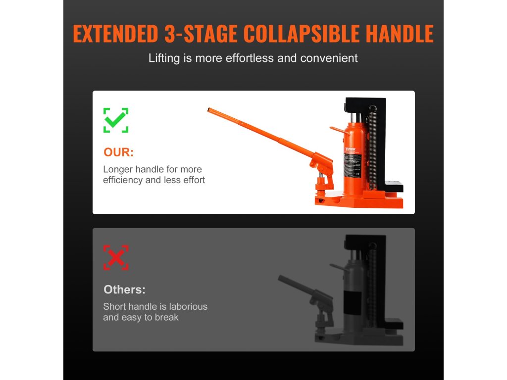A lábujj/tető magassága állítható a különböző helyzetekhez. Könnyen elhelyezhető alacsonyan fekvő helyeken, néhány perces erőfeszítéssel gyorsan és hatékonyan emeli a járműveket/ipari berendezéseket, időt és költségeket takarítva meg.
