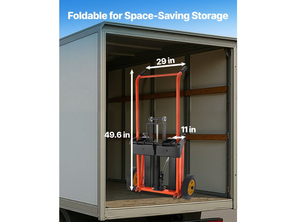 Váltson az emelő és a kézikocsi üzemmódok között! A két tartós 9 hüvelykes hátsó kerékkel és két 2 hüvelykes első kerékkel könnyedén mozgathatja a nehéz terheket. Raklapemelőnk ideális a zökkenőmentes szállításhoz bármilyen felületen.