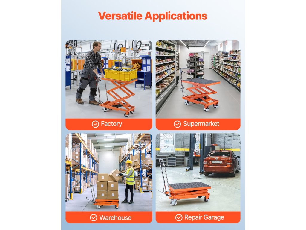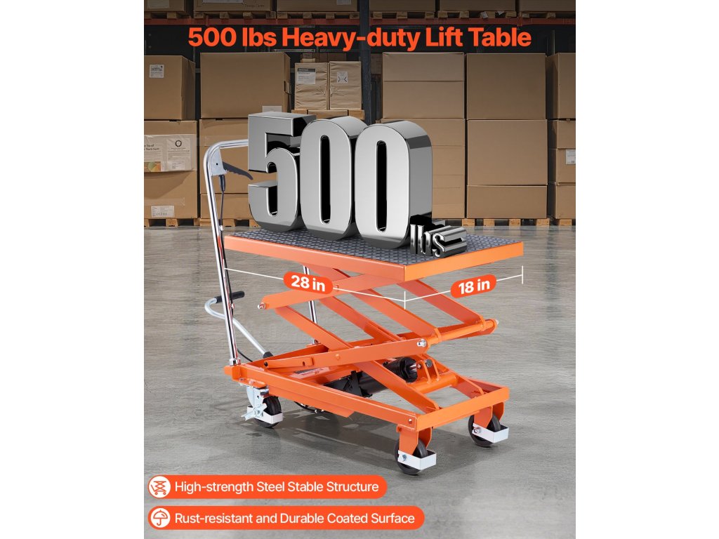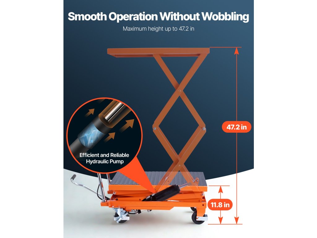 Ez a hidraulikus emelőasztal akár 500 font emelési kapacitást is támogat, 11,8 és 47,2 hüvelyk közötti állítható magassággal, így hatékony segítője az emelési feladatoknak.