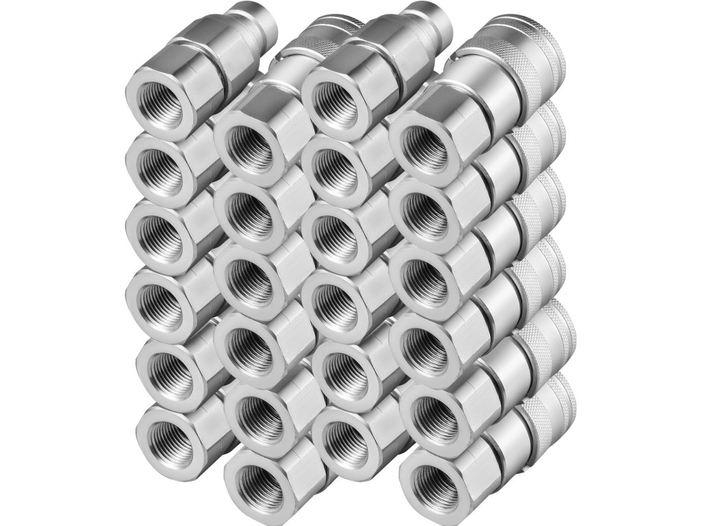 Ez a robusztus rozsdamentes acélból készült gyorscsatlakozó készlet ellenáll a nagy nyomás vagy magas hőmérséklet alatti deformációnak. A csatlakozók cink- és nikkelbevonatúak, így biztosítva a korrózióval és rozsdával szembeni nagyfokú ellenállást.