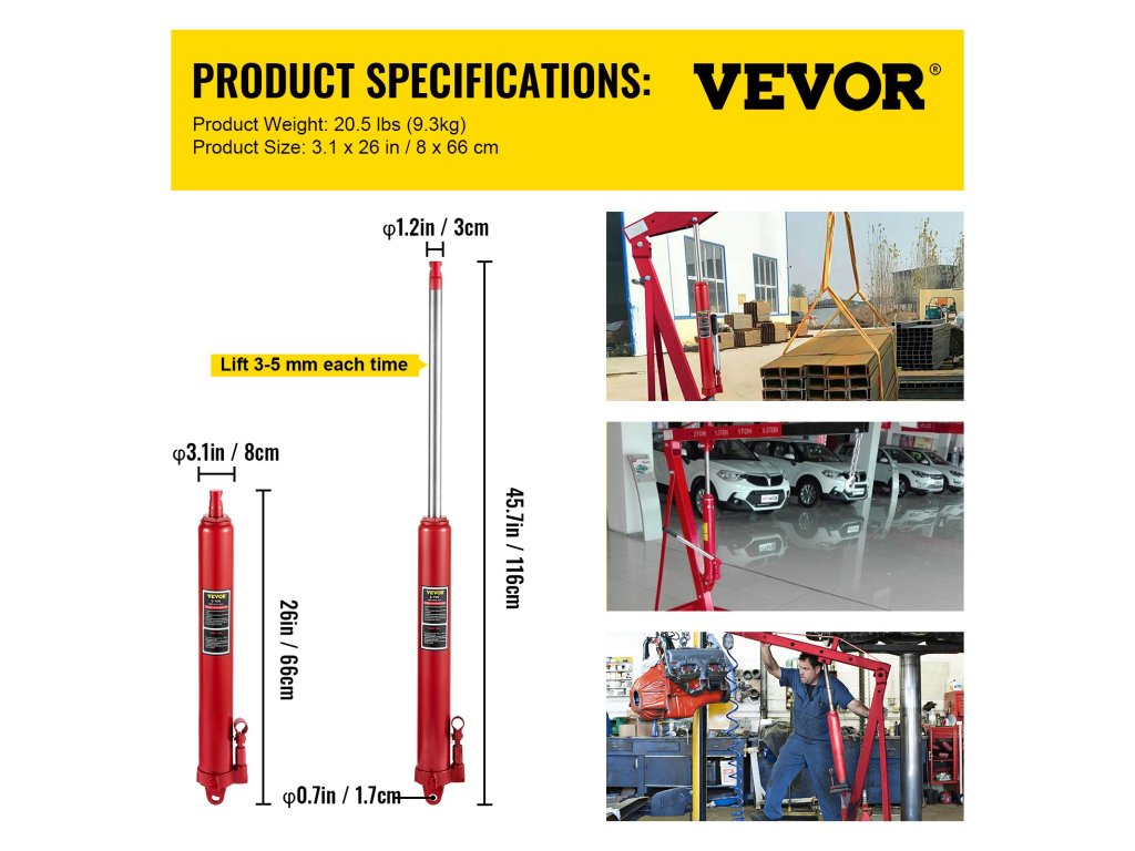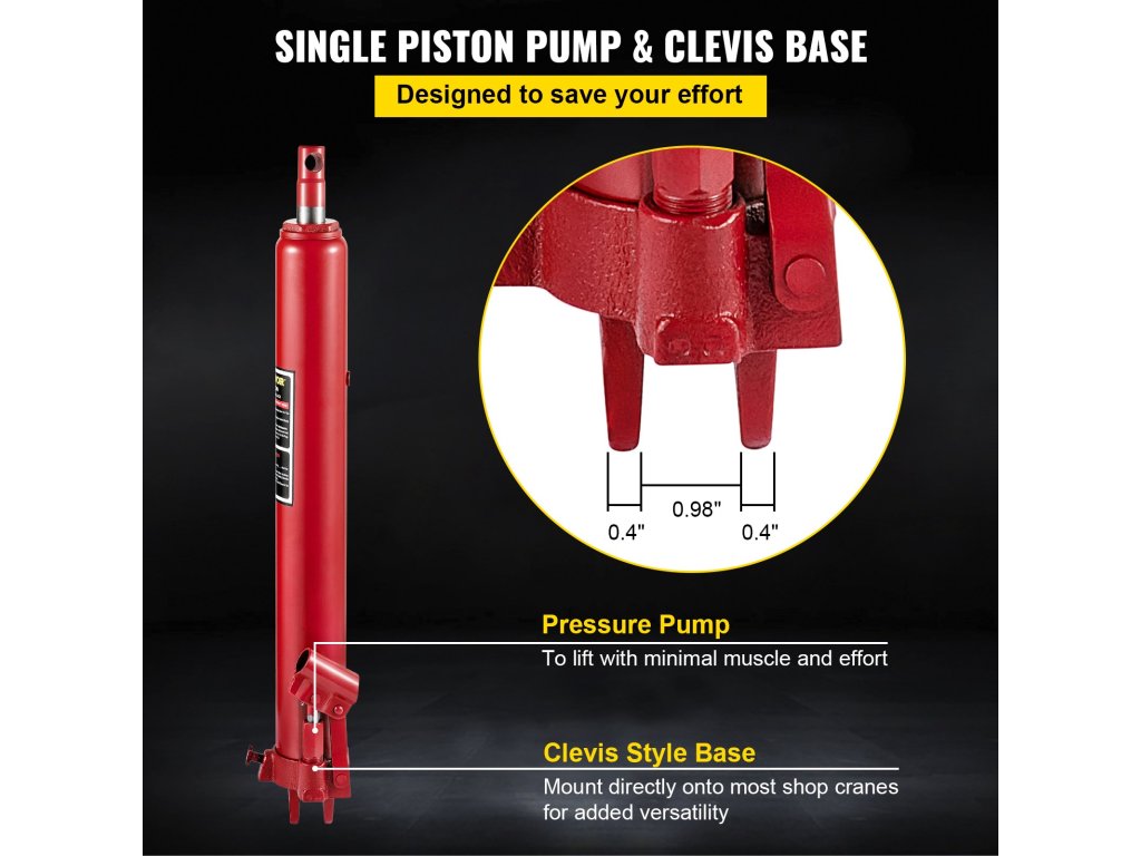 Hosszú dugattyús hidraulikus emelőnket háztartási és kereskedelmi használatra tervezték, garázs/műhelydaruk, motoros emelők és egyéb berendezések telepítésére.