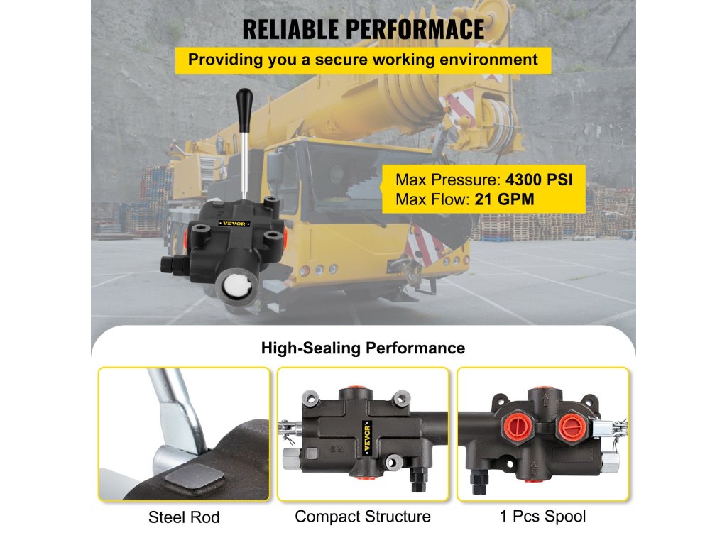 Hidraulikus irányító szelep, 1 tekercses, 21 GPM, 4300 PSI, traktorokhoz