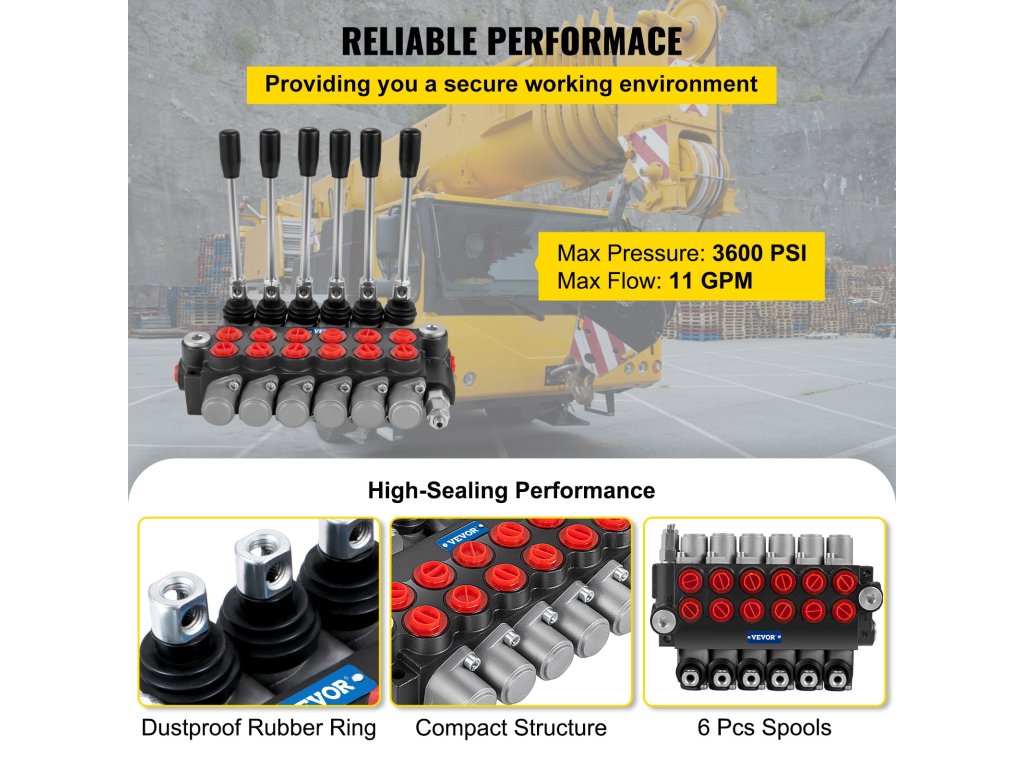 Hidraulikus irányító szelep 6 szekciós 11 GPM 3600 PSI rakodógépekhez