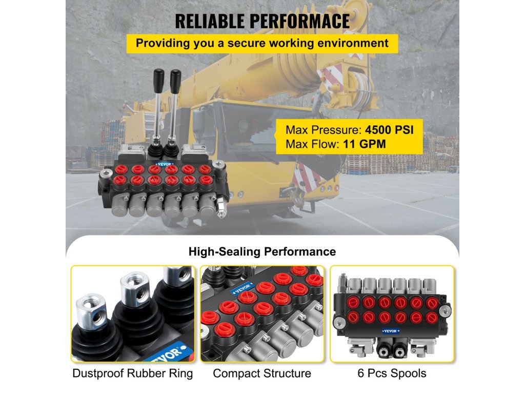 Hidraulikus irányítószelep 6 szekciós, 11 GPM, 4500 PSI, traktorokhoz