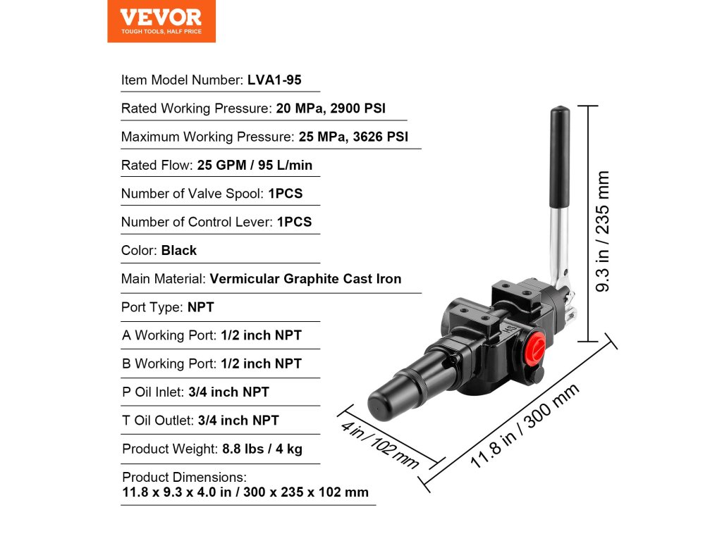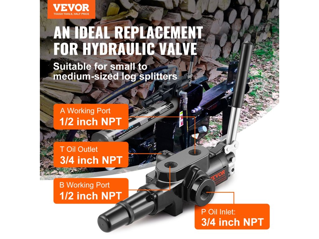 a VEVOR 1 tengelyes hidraulikus rönkhasító szelep megbízható megoldást kínál a szivárgó vagy meghibásodott szelepek cseréjére a hidraulikus rendszerekben a legkülönbözőbb iparágakban. Nagy, 25 GPM-es áramlási sebessége biztosítja a hatékony rönkhasítást, míg a visszatérő rugó és az ergonomikus kialakítás problémamentes működést tesz lehetővé.