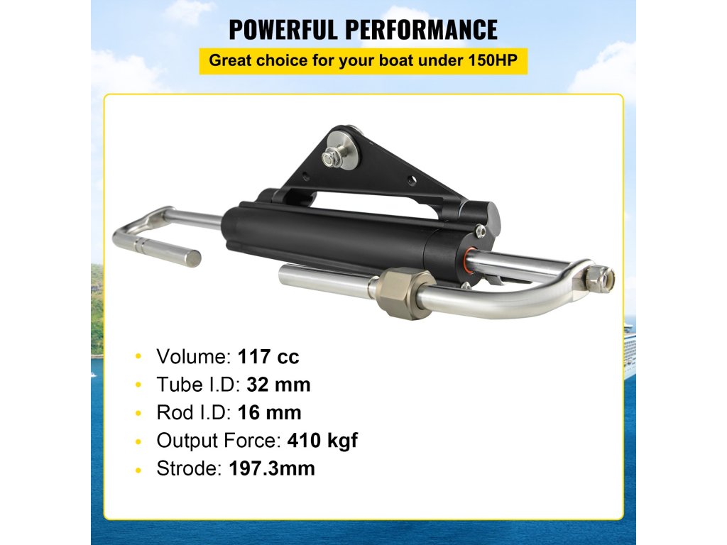 Hydraulický valec riadenia VEVOR je ideálnou voľbou pre lode s výkonom do 150 koní a poskytuje hladké a efektívne riadenie. Jeho robustná konštrukcia zaručuje dlhú životnosť v rôznych morských prostrediach, vďaka čomu je vhodný pre stredové konzoly, rybárske lode na mori a basové lode. Tento valec ponúka spoľahlivý výkon na rekreačné aj komerčné použitie a poskytuje bezpečné a citlivé riadenie, ktoré zjednodušuje ovládanie lode.