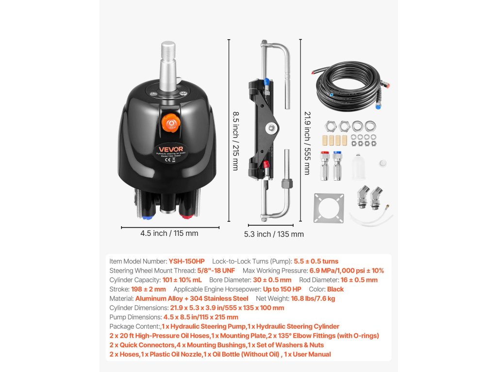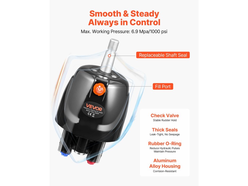 Tapasztalja meg a sima, pontos és megbízható kormányzás élményét a cirkálók, középkonzolok és halászhajók számára. Nagynyomású kormányszivattyúval, kompakt hidraulikus hengerrel és két nagy szilárdságú, korrózióálló tömlővel tervezték, így hosszú távú teljesítményt nyújt a zord tengeri környezetben.
