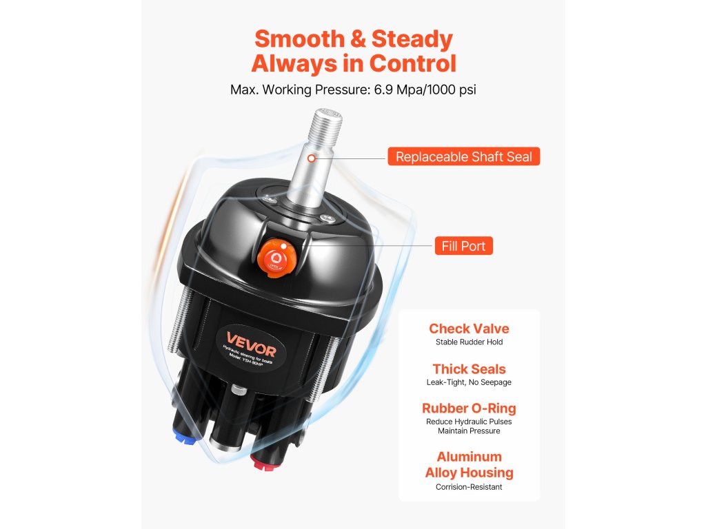 Tapasztalja meg a sima, pontos és megbízható kormányzás élményét a cirkálók, középkonzolok és halászhajók számára. Nagynyomású kormányszivattyúval, kompakt hidraulikus hengerrel és két nagy szilárdságú, korrózióálló tömlővel tervezték, így hosszú távú teljesítményt nyújt a zord tengeri környezetben.