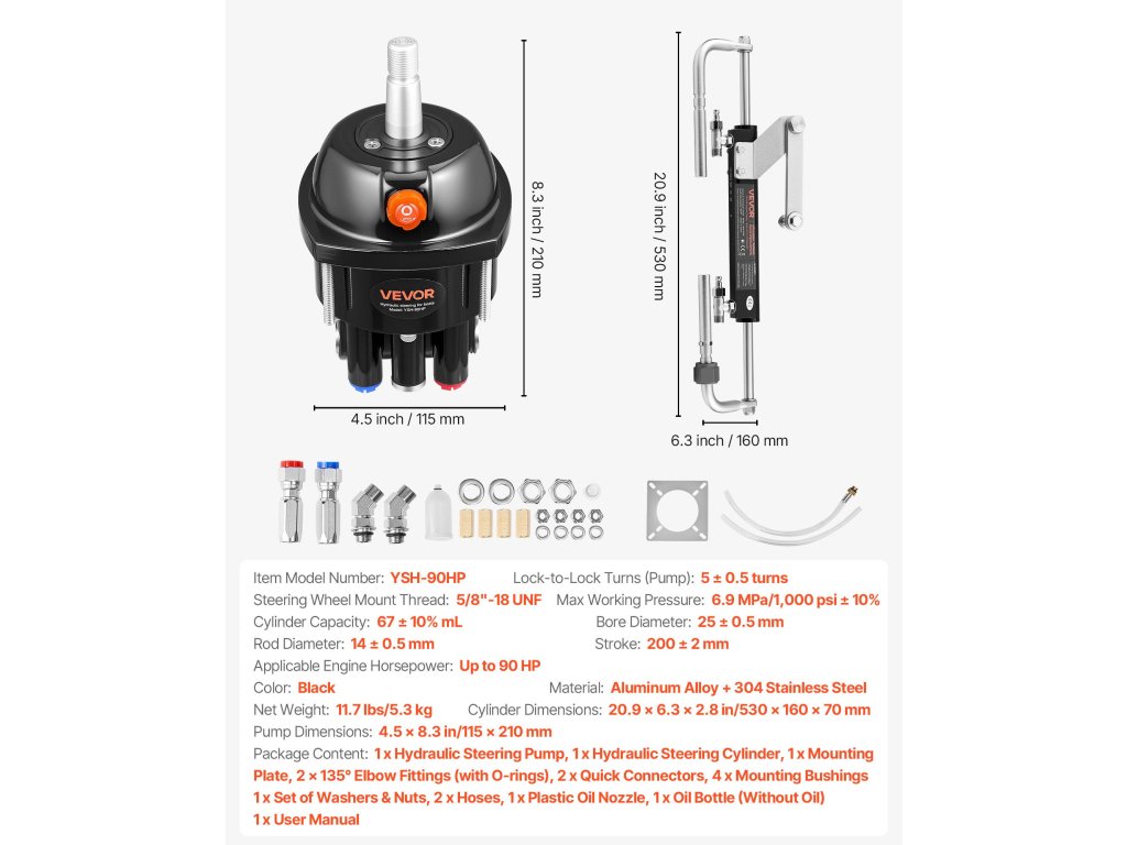 90 HP hidraulikus csónakkormány készlet