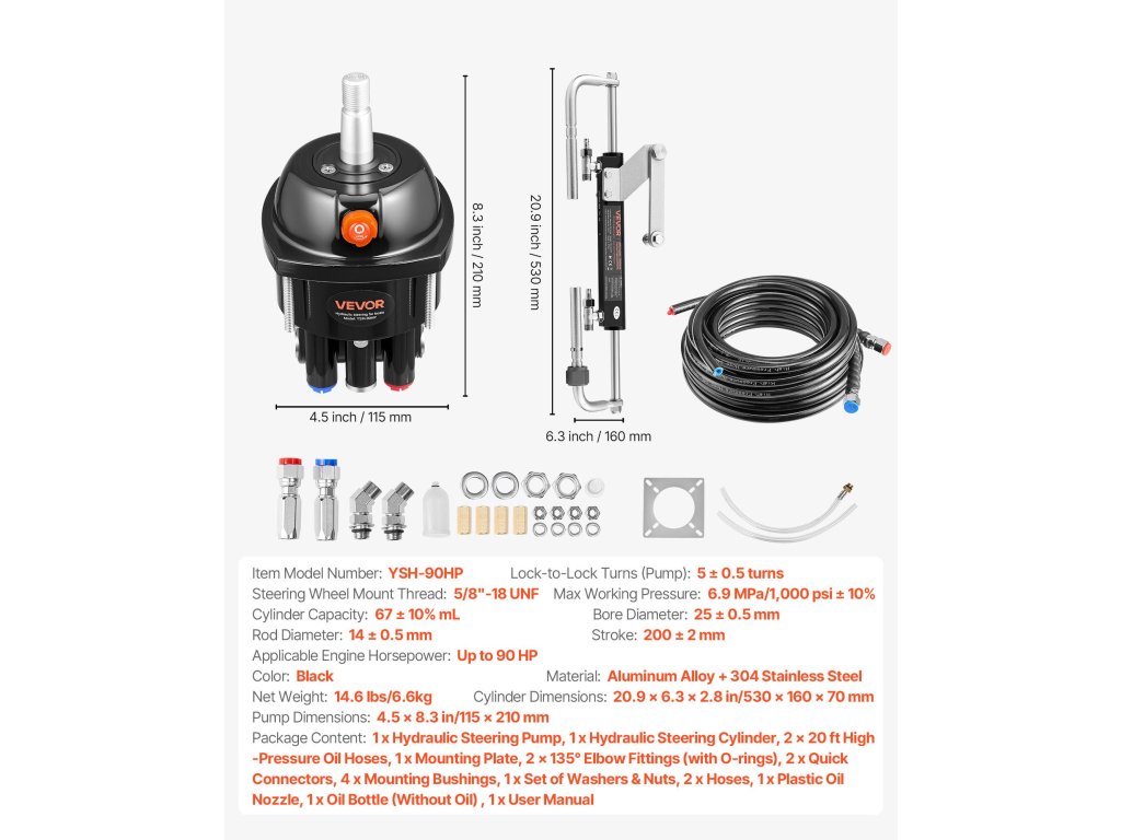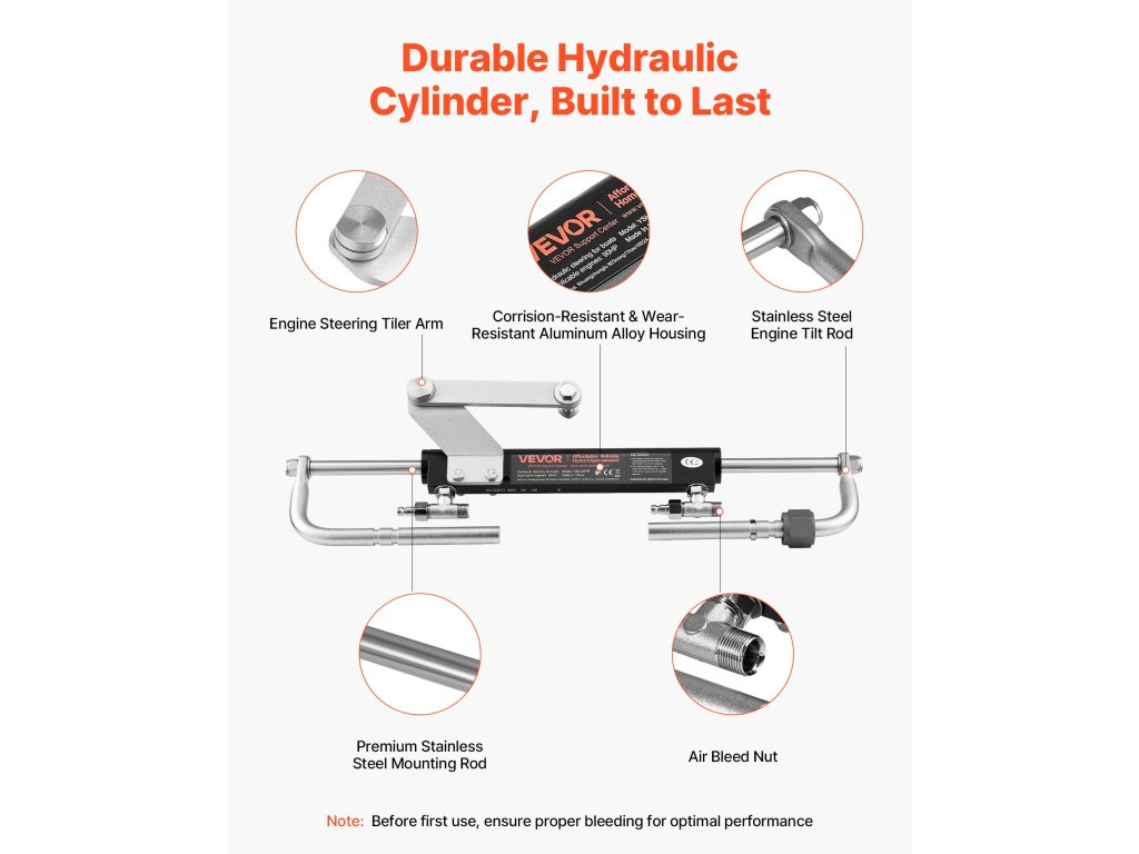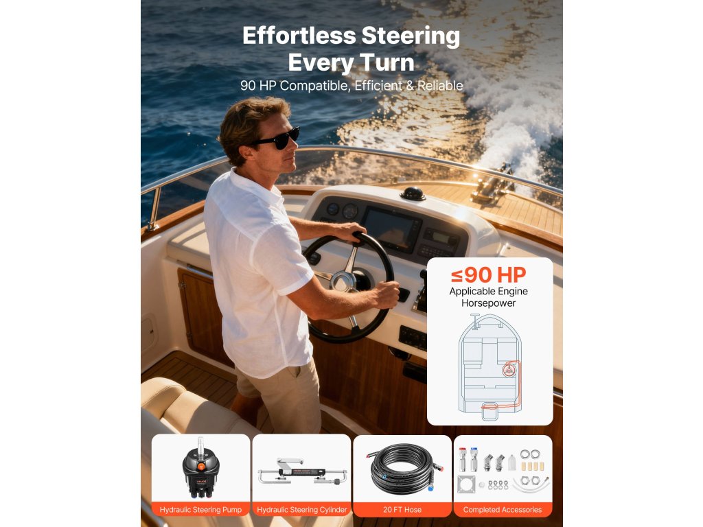 Tapasztalja meg a sima, pontos és megbízható kormányzás élményét a cirkálók, középkonzolok és halászhajók számára. Nagynyomású kormányszivattyúval, kompakt hidraulikus hengerrel és két nagy szilárdságú, korrózióálló tömlővel tervezték, így hosszú távú teljesítményt nyújt a zord tengeri környezetben.