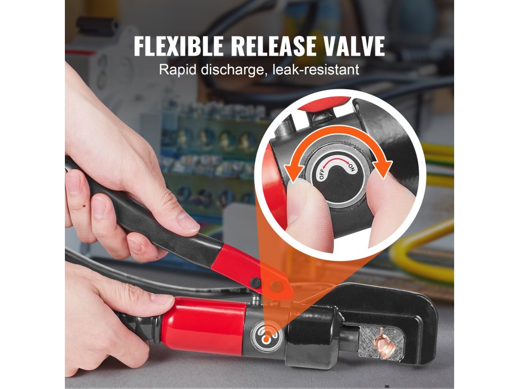 A hidraulikus krimpelő fogóink a könnyű kezelhetőség érdekében gombbal működtetett biztonsági szeleppel vannak felszerelve. Még a kezdők is képesek szoros krimpelési hatást elérni.