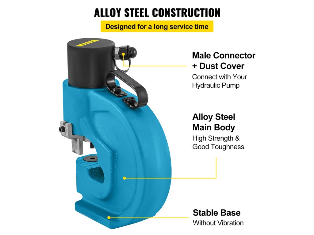 Ez a kisütő lyukasztó készlet prémium ötvözött acélból készült, nagy szilárdsággal és kiváló szívóssággal. Lapos és stabil talppal rendelkezik, amely biztosítja, hogy ne essen le könnyen. A férfi csatlakozót úgy tervezték, hogy hidraulikus szivattyúhoz csatlakoztatható legyen (készítse el maga).