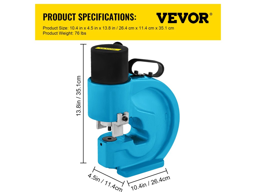 Ez a hidraulikus lyukasztó 1/10" - 2/5" (3-10 mm) vastag vaslemezekhez, 1/10" - 1/2" (3-12,7 mm) vastag réz/alumínium lemezekhez, 1/10" - 3/10" (3-8 mm) vastag rozsdamentes acélhoz alkalmas. Bélyegzőerő: 35T/350KN.