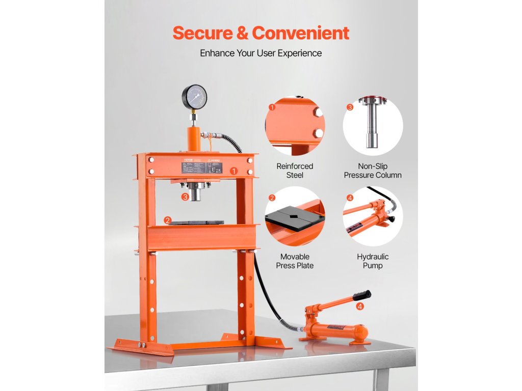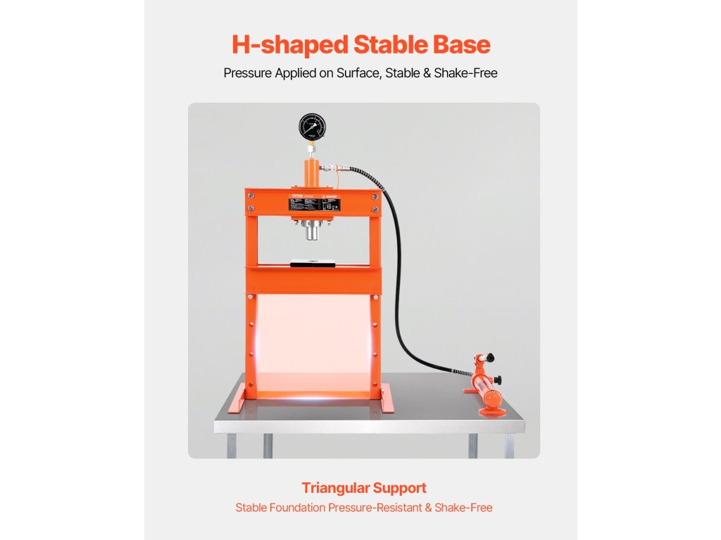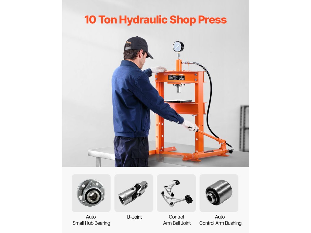 Autóipari présünk kiváló minőségű, nagy szilárdságú acélból készül, ami nagymértékben növeli az alap stabilitását. Ez biztosítja a biztonságosabb és megbízhatóbb működést az olyan alkatrészek, mint a perselyek, csapágyak, gömbcsuklók, U-csuklók és egyéb alkatrészek szétszerelésekor és összeszerelésekor.