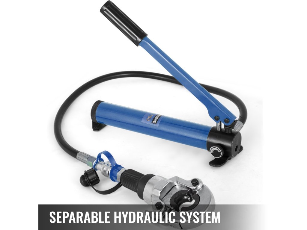Ez a hidraulikus présszerszámkészlet egy szabványos hidraulikus szivattyúval van felszerelve, amely 360°-ban forgatható fejjel rendelkezik, és 6 tonna préselési erőt biztosít. Könnyedén összenyomja a csöveket, időt és fáradságot megtakarítva. Könnyű és kompakt.