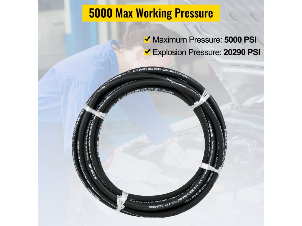 Maximálny pracovný tlak hydraulickej hadice 5000 PSI je ideálny pre vysokotlakové aplikácie. Bez problémov zvládne náročné úlohy a zachováva si integritu aj pri extrémnom tlaku. Vďaka tomu je vhodná na rôzne priemyselné použitia. Vysokotlaková kapacita poskytuje efektívny výkon, ktorý umožňuje prenos kvapalín bez únikov alebo poškodenia. Hadica je spoľahlivou voľbou pre náročné úlohy vďaka svojmu vysokému tlaku. To zaručuje optimálny výkon, vďaka čomu je neuveriteľne cenným nástrojom pre profesionálov.