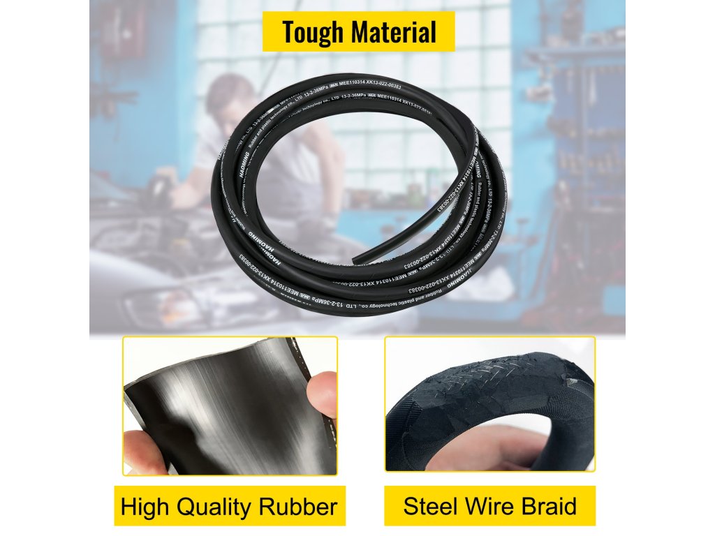 Táto hydraulická hadica VEVOR je odolná voči korózii a rôznym tekutinám vrátane olejov, palív a iných látok. Aj keď je namočená, zachováva si svoju pružnosť a pevnosť, vďaka čomu je vhodná na použitie v náročných podmienkach. Odolný materiál zaručuje dlhšiu životnosť, vďaka čomu zvládnete náročné podmienky bez poškodenia. Preto sa najlepšie hodí na priemyselné aplikácie. Odolnosť hadice voči kvapalinám zabezpečuje spoľahlivý výkon, ktorý uľahčuje prenos kvapalín bez akejkoľvek degradácie. Je teda spoľahlivou a odolnou voľbou.
