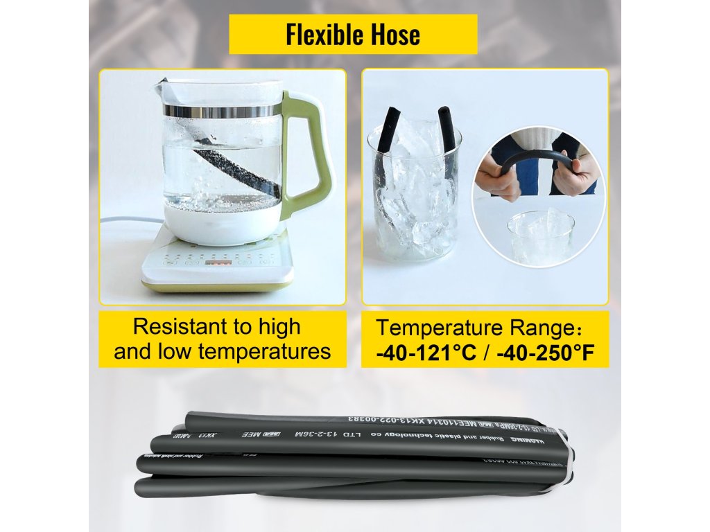 Táto hydraulická hadica VEVOR si zachováva flexibilitu v extrémnych teplotných rozsahoch od -40 °C do 250 °C, vďaka čomu je vhodná do rôznych klimatických podmienok. Hadica zostáva flexibilná aj vo veľmi nízkych alebo vysokých teplotách, čím poskytuje spoľahlivý výkon v akomkoľvek prostredí. Jej teplotná odolnosť zabezpečuje trvanlivosť hadice. Extrémne podmienky zvládnete bez poškodenia, čo z nej robí spoľahlivú voľbu pre mnohé aplikácie.