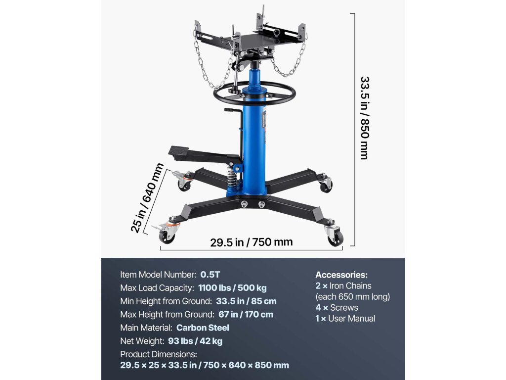 Hidraulikus váltóemelő 0,5 tonna/1100 font 2 fokozatú 360°-os kerekekkel