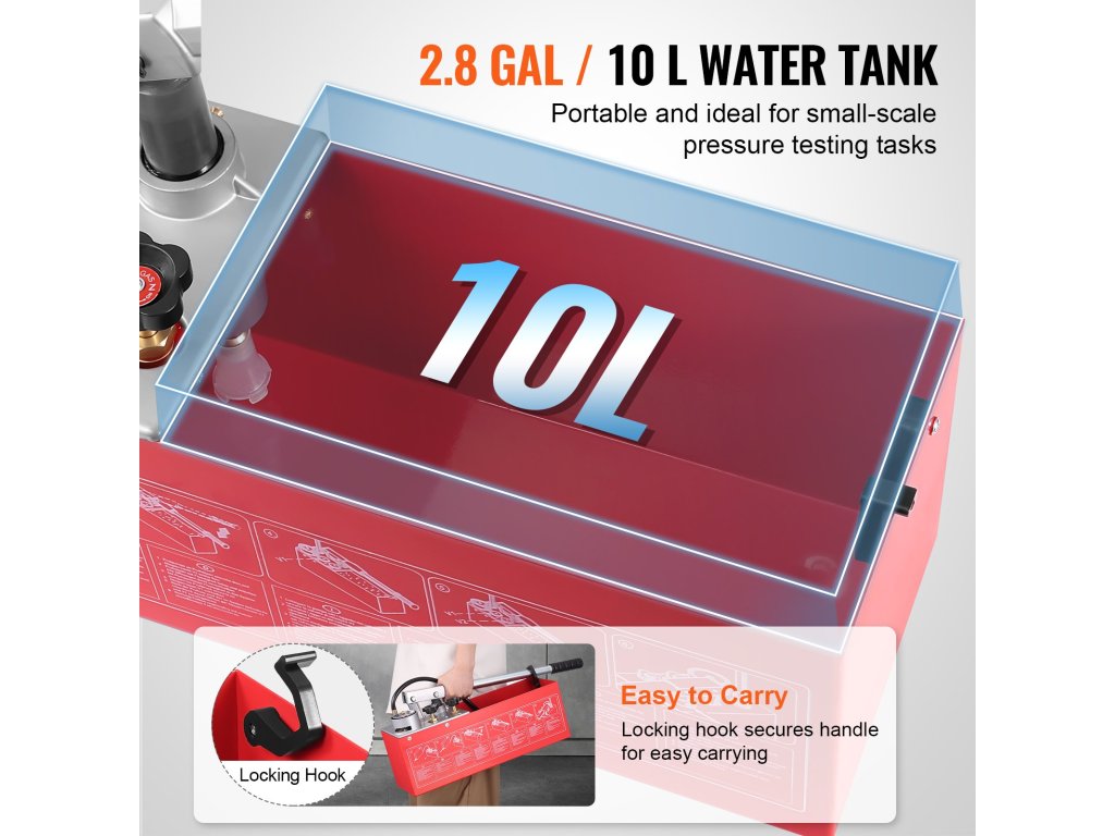 A hidraulikus nyomáspróba szivattyúnk maximalizálja a tőkeáttételt, így kevesebb erőfeszítéssel nagyobb nyomást tud létrehozni. Búcsúzzon el a hosszú szivattyúzás közbeni fáradtságtól, és köszöntse a fáradságmentes nyomáspróbát.