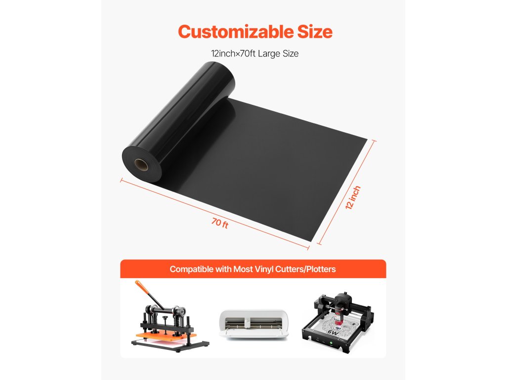 12 hüvelyk x 70 láb fekete vinyl hőátadó tekercs