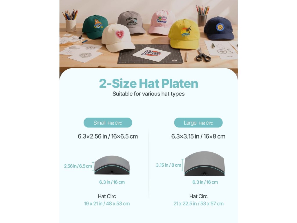 A kalapokhoz való hőprésünk pontosan szabályozható hőmérsékletet (33,8-450) és időt (akár 999 s) biztosít a különböző anyagokra történő optimális nyomtatáshoz. Több kalaplemezt tartalmaz szublimációs papírhoz, poliészterhez, pamuthoz stb. Kezdők és profik számára egyaránt ideális, biztosítva a könnyű használatot.
