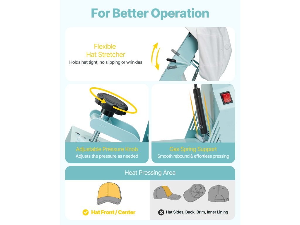 A kalapokhoz való hőlégprés szilárdan rögzül a munkafelülethez, megakadályozva a mozgást a hőlégprés során, és biztosítva a minta pontos átvitelét.