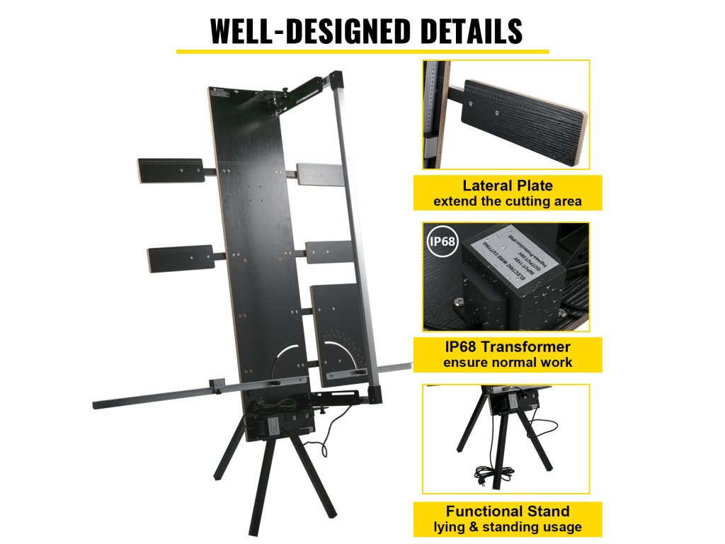 A forró drótvágó ideális a hungarocell, polisztirol és merev polisztirol habszigetelő panelek vágására. A hat nikróm fűtőhuzalnak, az alumíniumötvözetből készült keretnek és a lézergravírozott munkalapnak köszönhetően a habvágóval méretpontos vágások végezhetők, akár egyenes, akár 0-90°-os szögben.