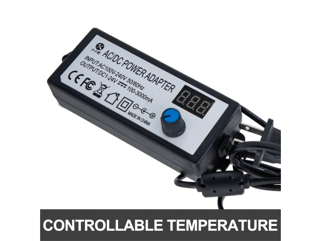 A hálózati adapter egy gombbal van felszerelve a fokozatmentes hőmérsékletszabályozáshoz, hogy a fűtőszál hőmérsékletét a különböző anyagokhoz igazíthassa. Túláramvédelemmel is rendelkezik a működés közbeni biztonság érdekében.