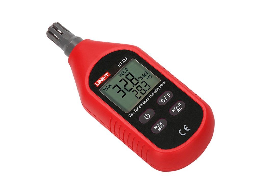 Az UNI-T UT333 egy digitális hőmérséklet- és páratartalom-mérő, amelyet a környezeti feltételek pontos mérésére terveztek. A műszer alkalmas lesz otthoni és professzionális használatra - például raktárakban, irodákban, üvegházakban, szerverszobákban, laboratóriumokban stb. Az UT333 -10°C és 60°C közötti hőmérsékletet és 0% és 100% közötti relatív páratartalmat mér ±1°C, illetve ±5%-os relatív páratartalom pontossággal, így a legtöbb mindennapi alkalmazáshoz pontos. Kompakt kialakítása, könnyű súlya (102 g) és háttérvilágítással ellátott kijelzője praktikussá és kényelmessé teszi a műszer használatát még gyengén megvilágított helyiségekben is.