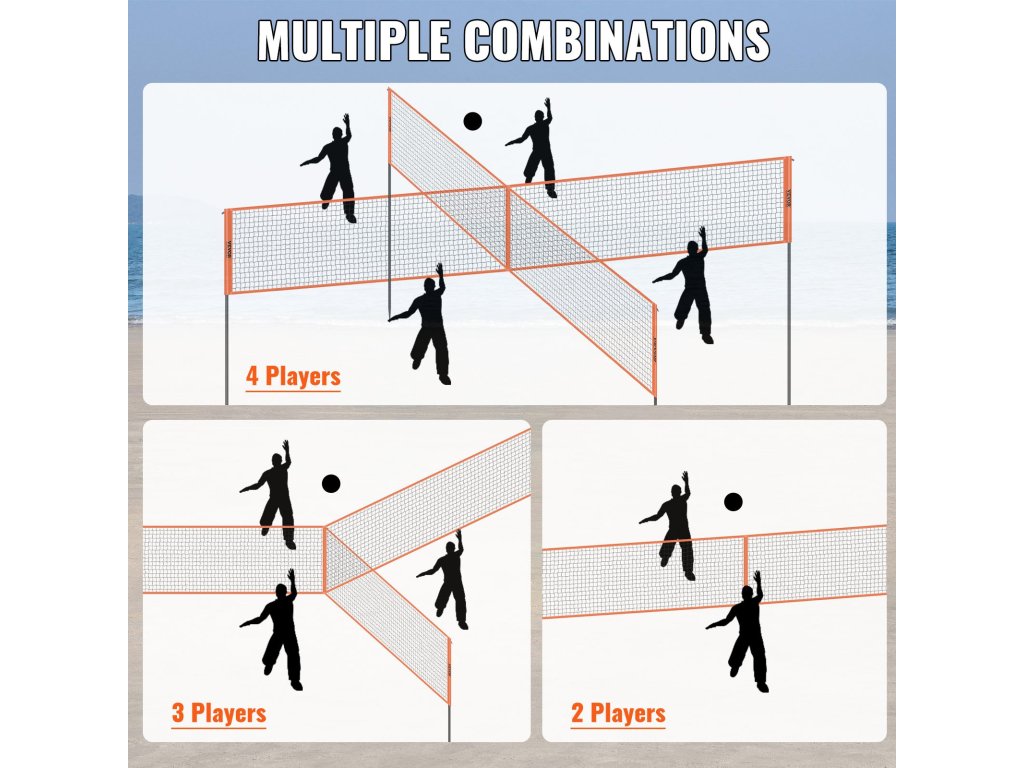 Akár egy teljes, négyfős csapat, akár egy kisebb, háromfős csoport, vagy akár csak egy duó, ez a röplabdaháló zökkenőmentesen alkalmazkodik a különböző kombinációkhoz.