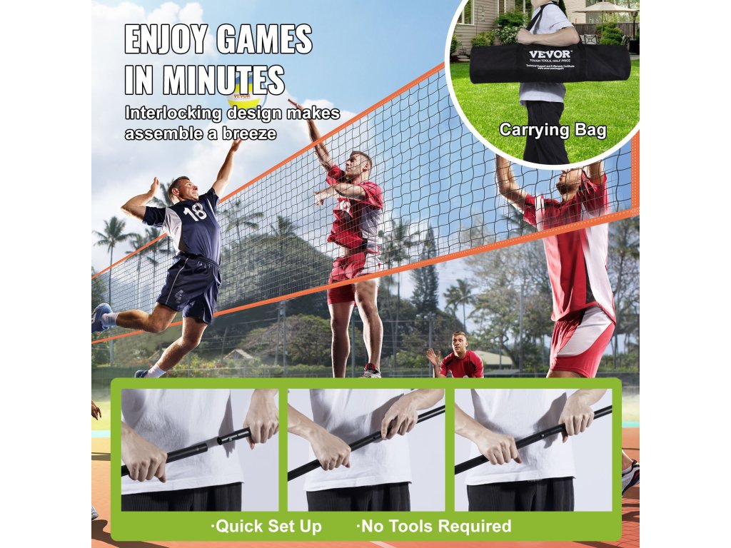 Élvezze a röplabdameccseket percek alatt a felhasználóbarát kialakításnak és a csatlakoztathatóságnak köszönhetően. A felállításhoz nincs szükség szerszámokra, ami leegyszerűsíti az összeszerelést.