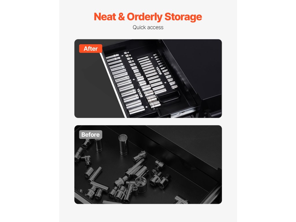 A VEVOR hordozható fiókszervező mágneses alapjának köszönhetően biztonságban tartja a fiókokat. Ez a fiókszervező ergonomikus fogantyúval rendelkezik a nagyobb kényelem érdekében, és számos fiókmárkával kompatibilis. A masszív ABS-ből készült merev fióktartó racionalizálja a tárolást és növeli a hatékonyságot a legkülönbözőbb forgatókönyvekben.