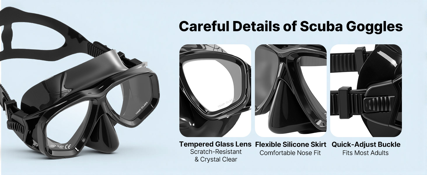 A mini búvárpalack egy párásodásgátló technológiával ellátott lencsét kombinál, hogy tiszta látást biztosítson az elejétől a végéig. A rendkívül rugalmas szilikon perem a különböző arcformákhoz igazodik, és kényelmes, szivárgásmentes tömítést biztosít, hogy élvezhesse a víz alatti élményt.