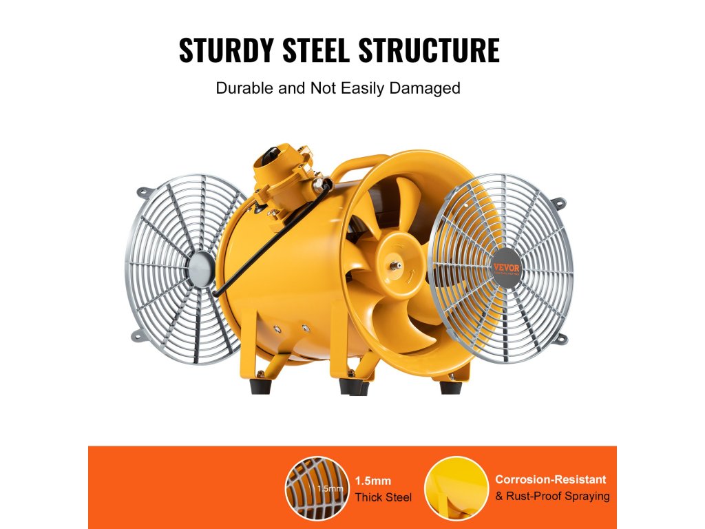 Nagy teljesítményű váltóáramú motorral van felszerelve, és hatékonyan, gyorsan és alaposan elűzi a füstöt, a szagokat és a forró levegőt. Ideális a legkülönbözőbb alkalmazásokhoz, például raktárakhoz, építkezésekhez és gyárakhoz. Termékeinket szigorúan teszteljük a kiszállítás előtt, így Ön aggodalom nélkül használhatja őket.