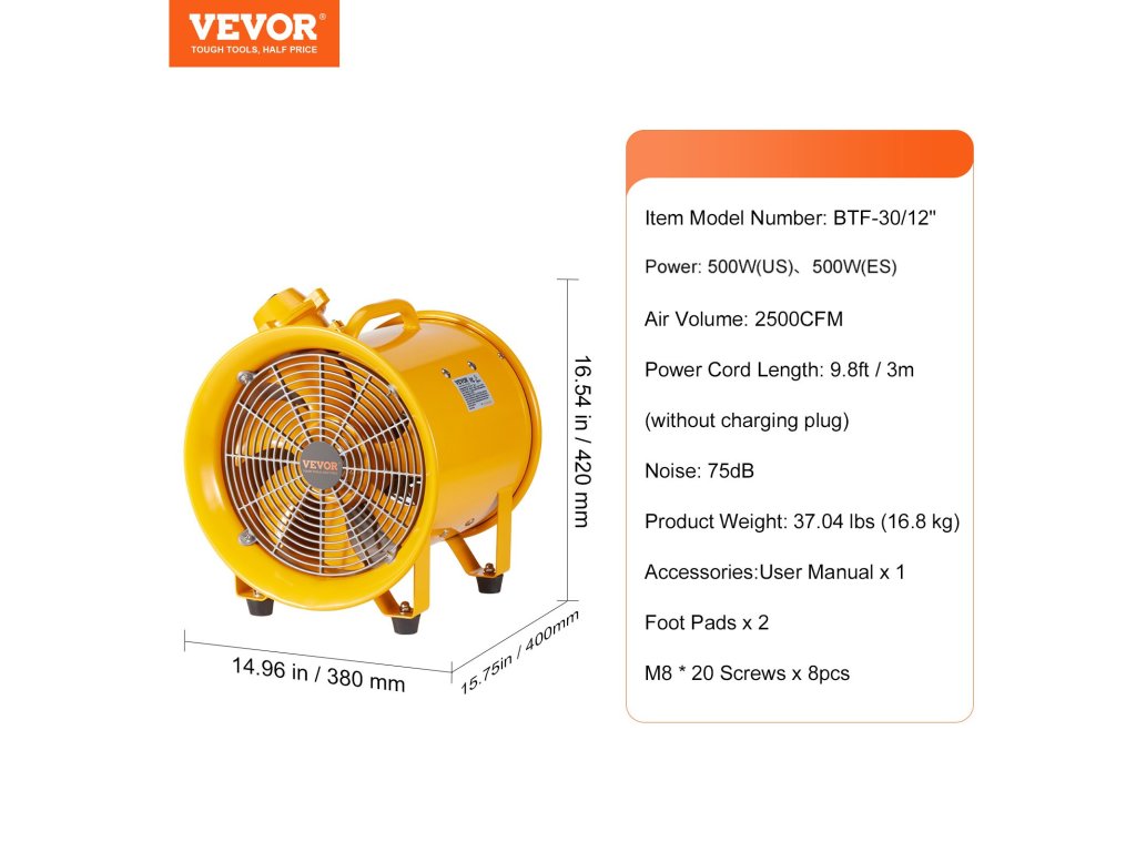 Hordozható elszívó ventilátor Ø304,8 mm 500W 2500CFM 3m kábel