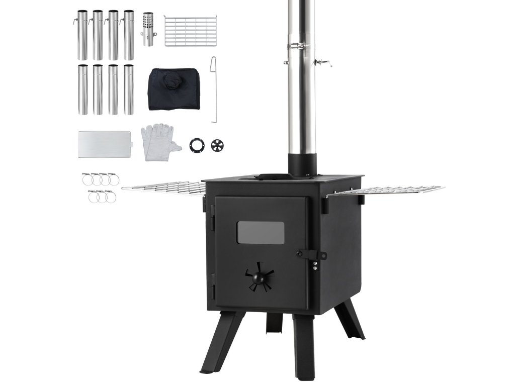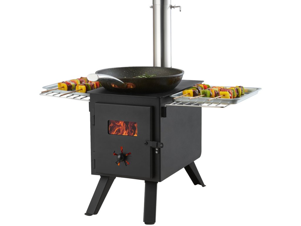 Hordozható fatüzelésű sátorfőző, acél, 218,4 cm, 22941,9 cm³, 8 cső