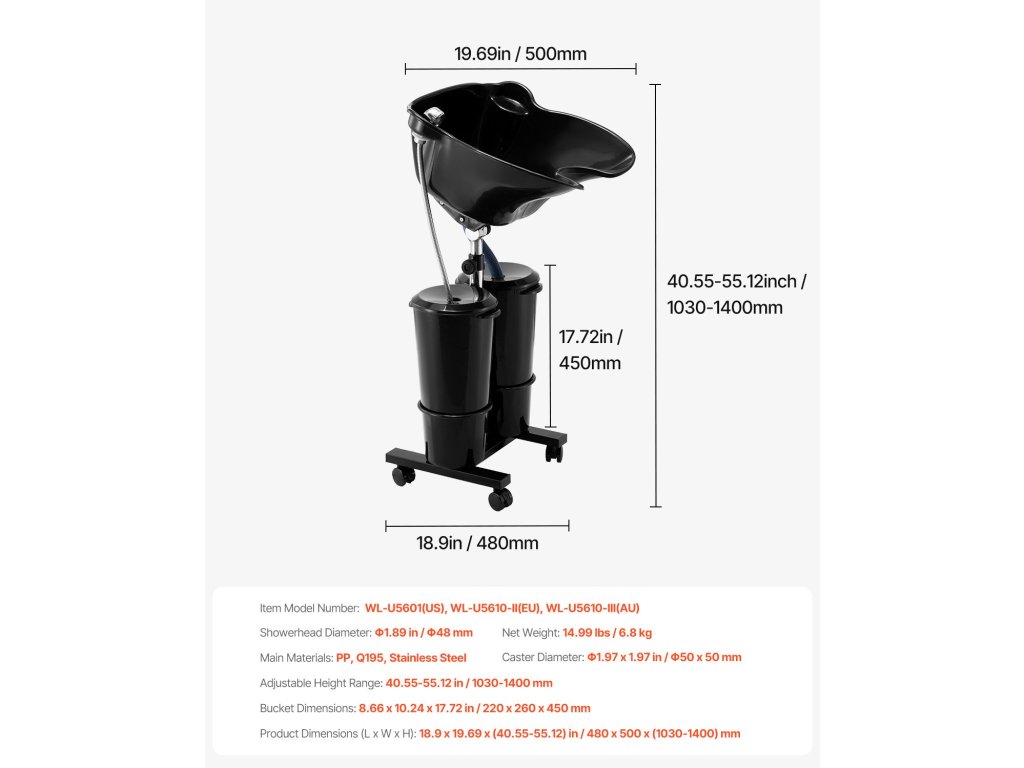 A mindössze 6,8 kg súlyú, hordozható szalon sampontál kerekes kialakítású a könnyű mobilitás érdekében. Kihajtható és kompakt módon tárolható, így helyet takarít meg, és használata kényelmes és problémamentes.