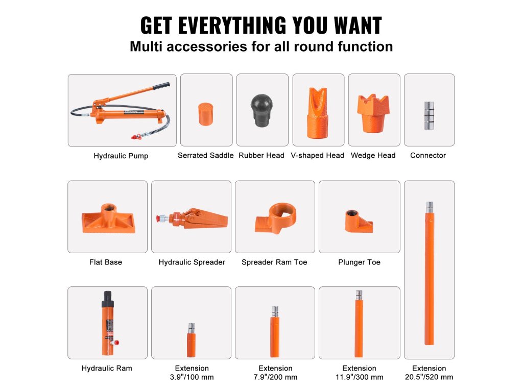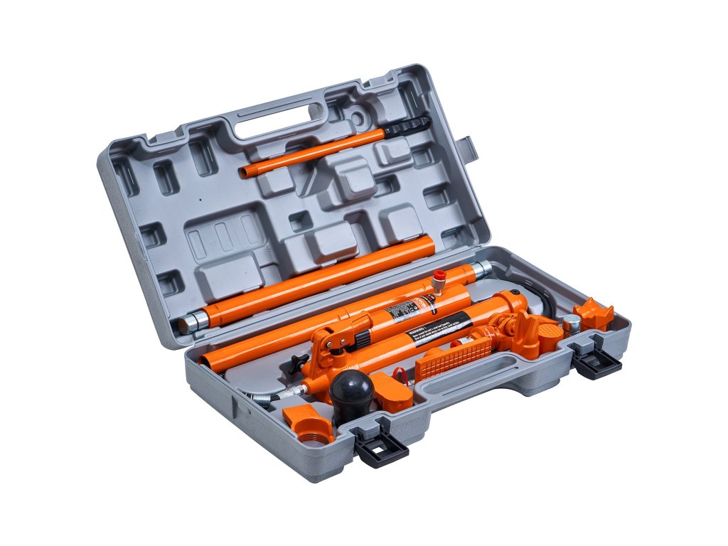 A porta power készlet tartalmaz egy nagy teherbírású szivattyút, több hosszabbítót és tartozékot a karosszériaelemek horpadásának javításához, a gépek kiegyenesítéséhez és sok máshoz.