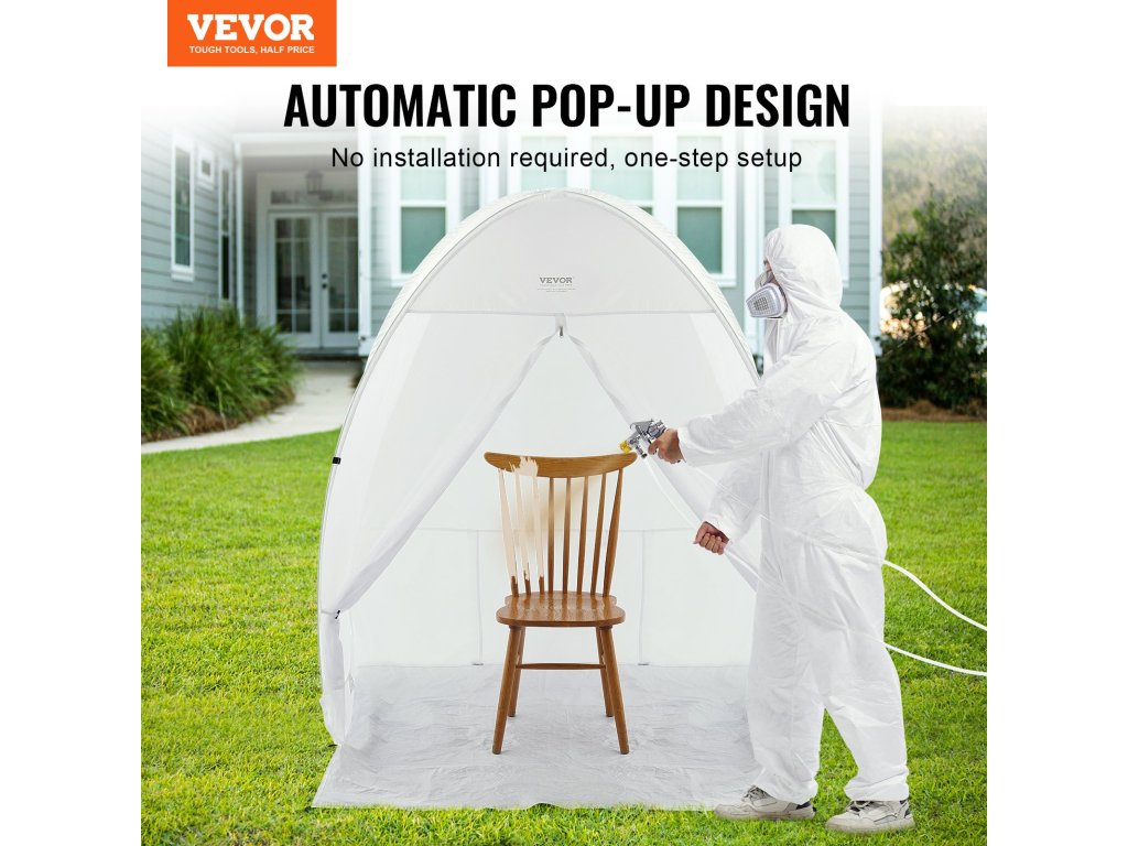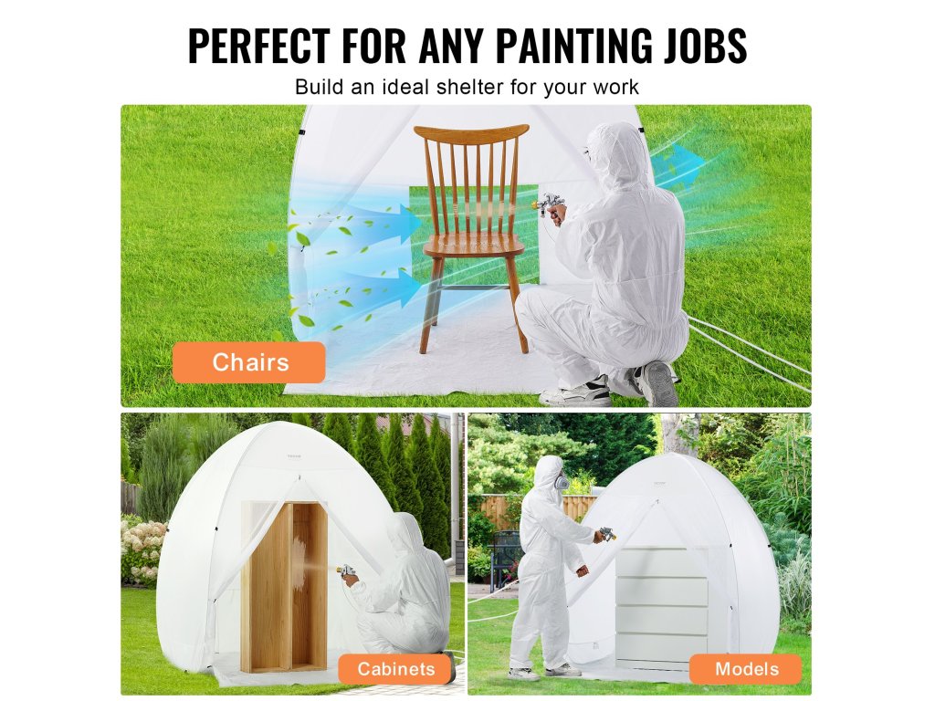 Ez a festékszóró menedék kiváló ideiglenes permetezési terület közepes és kisebb dekorációkhoz. Különböző közepes és kis méretű bútorok, például székek, asztalok és könyvespolcok elhelyezésére alkalmas, és elegendő munkaterületet biztosít ahhoz, hogy minden sarkot egyenletesen lefedjen.