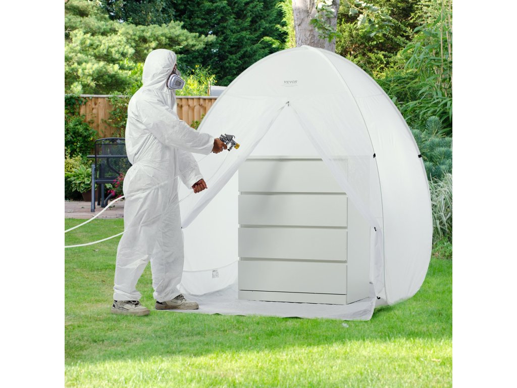 A festékszóró sátor másodpercek alatt felállítható és lebontható. Könnyű szerkezetének köszönhetően rendkívül hordozható, így könnyedén változtathatja a munkavégzés helyét. Ha kint rossz az időjárás, egyszerűen beköltözhet a házba, és folytathatja a projektet.
