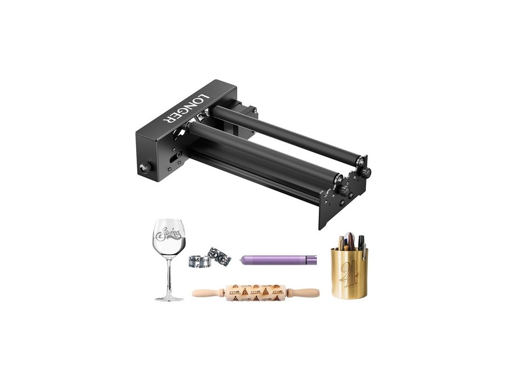 Lézeres forgógörgőnk 360 fokban forgó kialakítással rendelkezik, amely lehetővé teszi hengerek vagy ultrafinom tárgyak, például kerek fa tárgyak, tálak, tégelyek, befőttesüvegek, italos dobozok, palackok, csövek és hordók gravírozását.