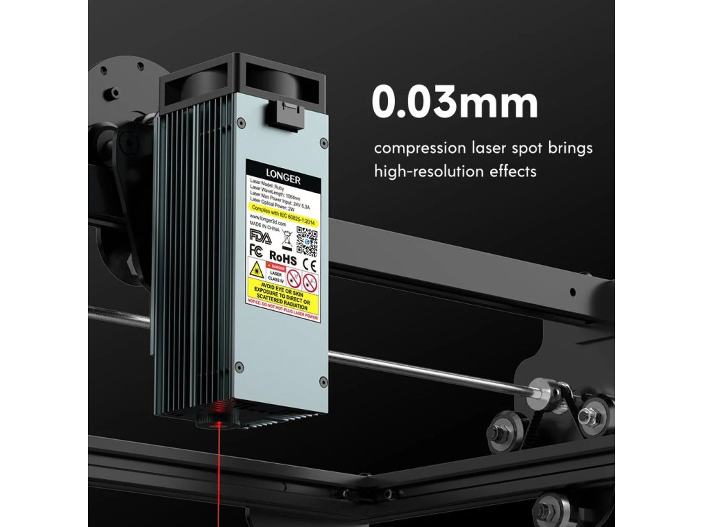 - Precíziós faragás a javából: A legmodernebb technológiának és a 0,03 x 0,03 mm-es ultrafinom lézerpontméretnek köszönhetően a Longer Ruby milliméteres pontosságú, bonyolult részleteket tud elérni, és tökéletes véseteket készíthet fémeken, műanyagokon és más anyagokon.