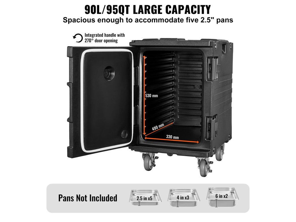 Hőszigetelt élelmiszer-szállítódoboz 95 literes, kerekekkel és csattal