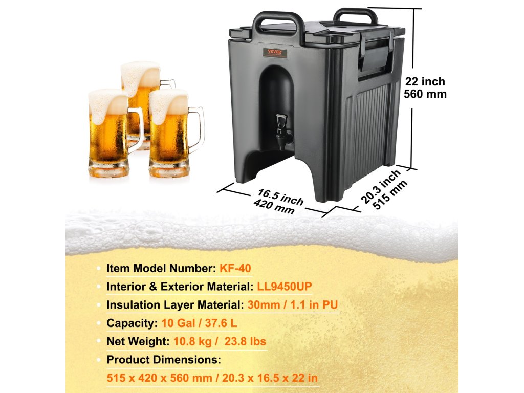 Legyen szó gyümölcsléről, kávéról, tejről vagy teáról, a 10 gallonos (37,6 literes) italadagolónk mindent elbír - hideget és meleget egyaránt. Az LL9450UP belső és külső teste, valamint egy 1,18 hüvelykes (30 mm) PU-habréteggel rendelkezik, amely több mint 10 órán át szigetelve tartja az italokat. Forró vagy hideg, ez a készülék gondoskodik rólad!
