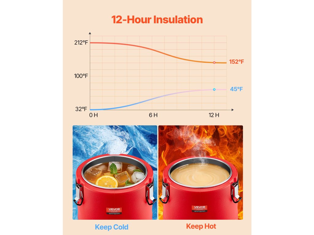 Ez a szigetelt italadagoló nagy kapacitást kínál a forró vagy hideg italok éjjel-nappal történő felszolgálásához, így megfelel a kávézók, éttermek, büfék, szabadtéri rendezvények és egyéb létesítmények követelményeinek.