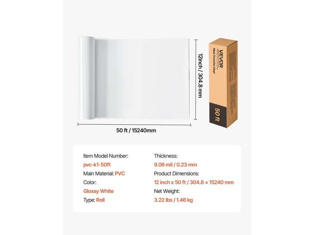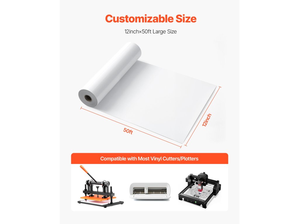 12 hüvelyk x 50 láb fehér hőátadó vinil tekercs