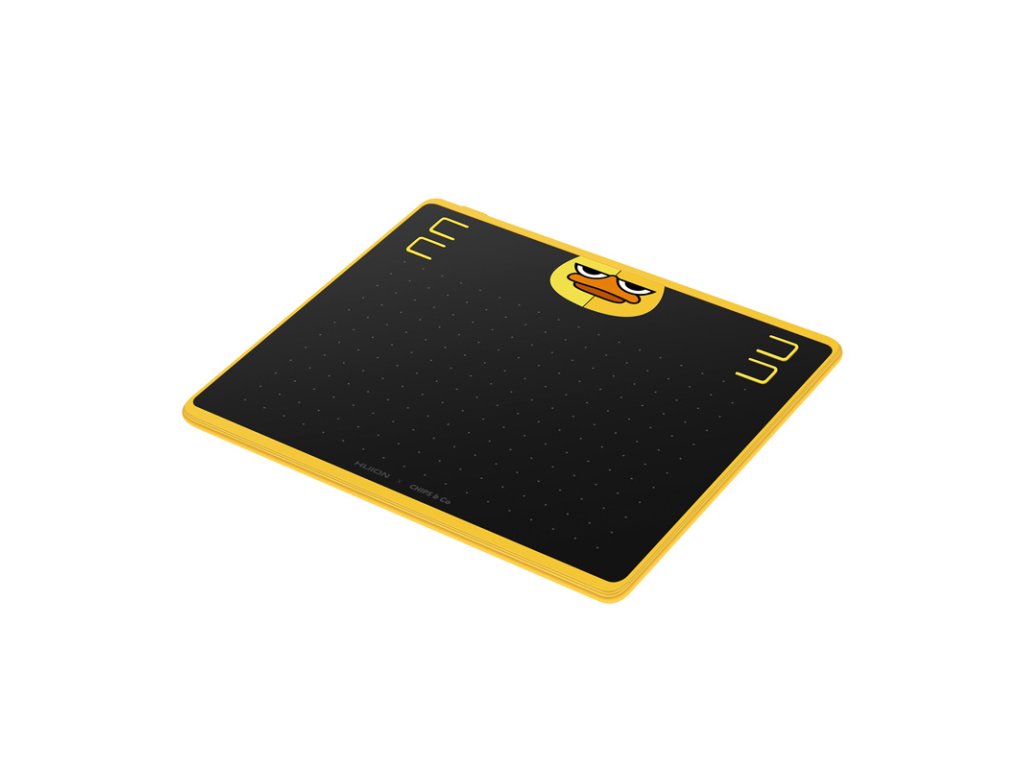 A Huion HS64 SE már első pillantásra lenyűgözi az embert a vicces, bájos dizájnjával, amely egy rajzfilm kacsát és finom csillag akcentusokat tartalmaz a felületen. A mindössze 8 mm vastagságú, vékony kialakításnak köszönhetően a készülék könnyen elfér egy hátizsákban vagy táskában, így ideális választás mobil dolgozók vagy gyakran utazók számára.