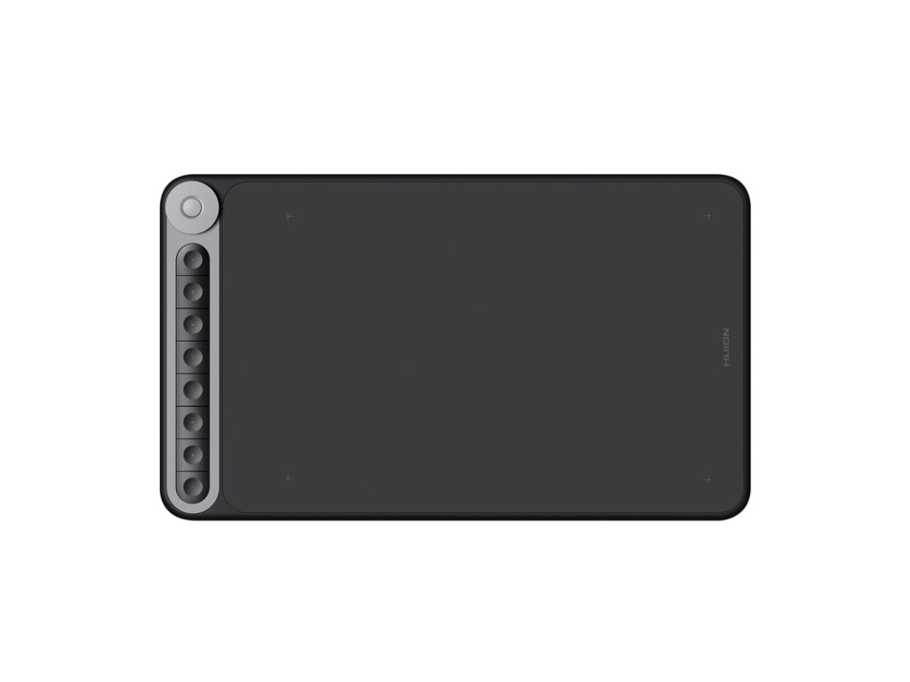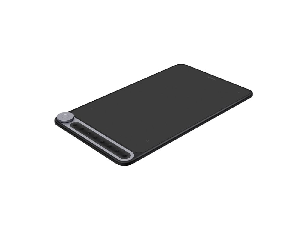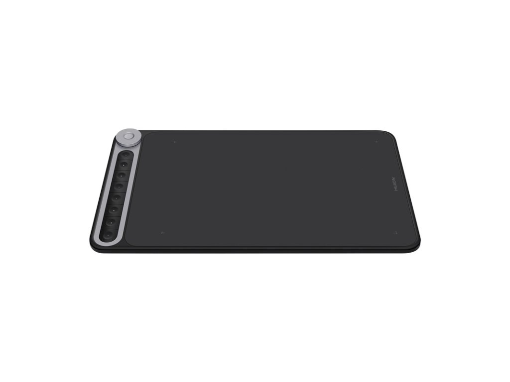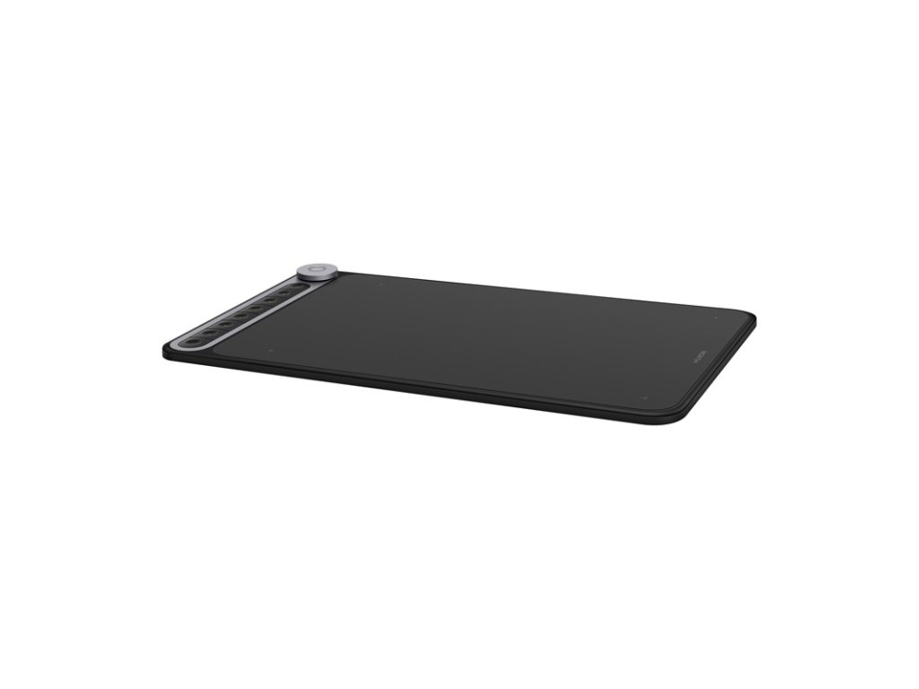 A Huion Q620M 8 programozható gombbal és egy funkciótárcsával van felszerelve, amely gyors hozzáférést biztosít a leggyakrabban használt funkciókhoz - mint például a zoomolás, a vászon forgatása vagy az ecsetméret módosítása. Ez a konfiguráció megkönnyíti a táblagép saját munkastílusához való igazítását és a hatékonyság növelését.